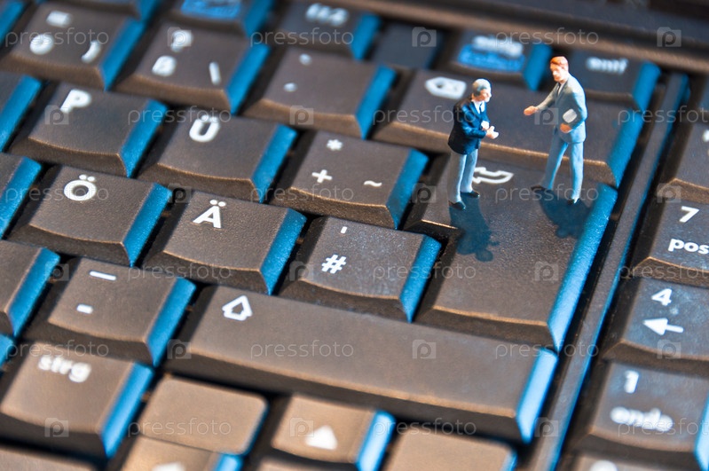 Две фигурки бизнесменов на клавиатуре