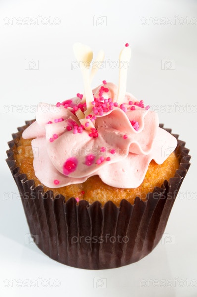 Красивый кекс с глазурью и драже