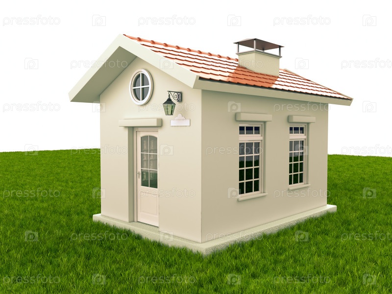 Простой белый дом на траве