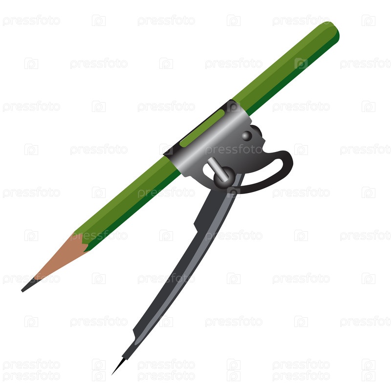 Циркуль с карандашом на белом фоне