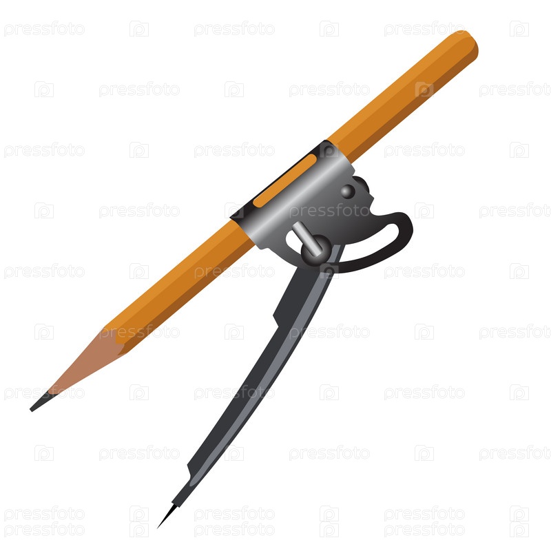 Циркуль с карандашом на белом фоне