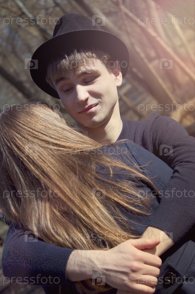 Молодая влюбленная пара на улице