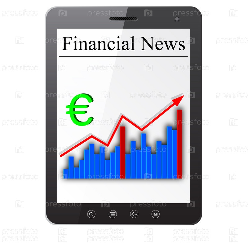 Финансовые новости на планшетном компьютере, изолированном на белом. Векторная иллюстрация