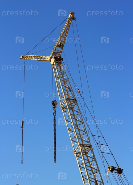 Желтый кран на строительной площадке на фоне неба
