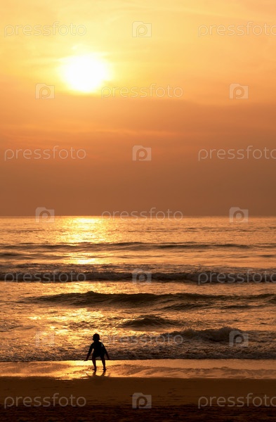 Ребенок играет на пляже вечером