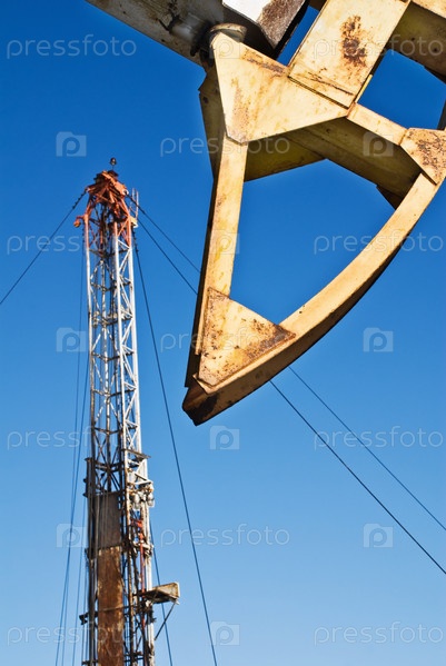Фрагмент буровой установки на фоне голубого неба