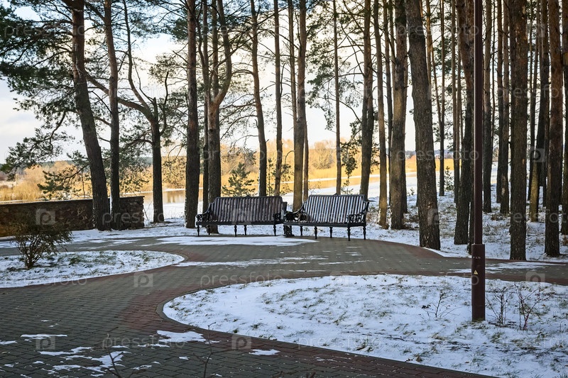 Первый снег в начале зимы в парке