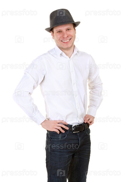 Молодой человек в шляпе, изолированный на белом фоне