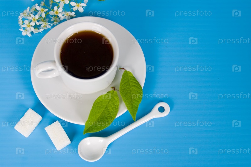 Чай с сахаром на синем фоне