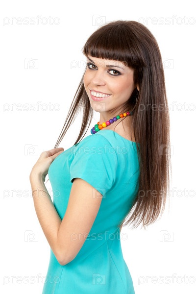 Чувственная, красивая женщина с длинными волосами, изолирована на белом фоне