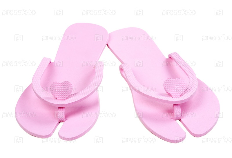 Розовые тапочки-вьетнамки на белом фоне