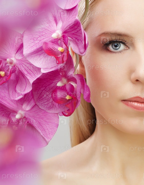 Красивая девушка и цветы орхидеи