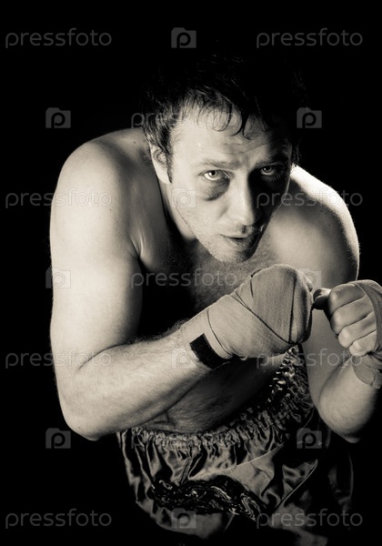 Боксер с синяком под глазом. Темный фон