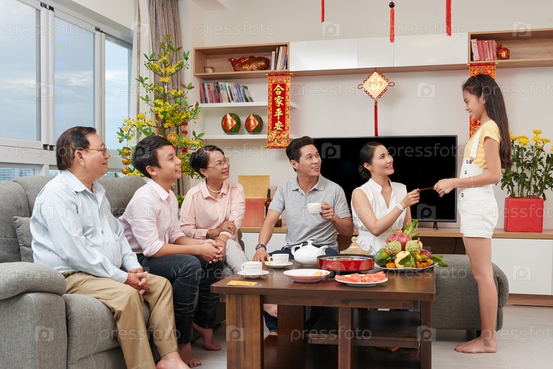 Азиатская семья празднует Новый год