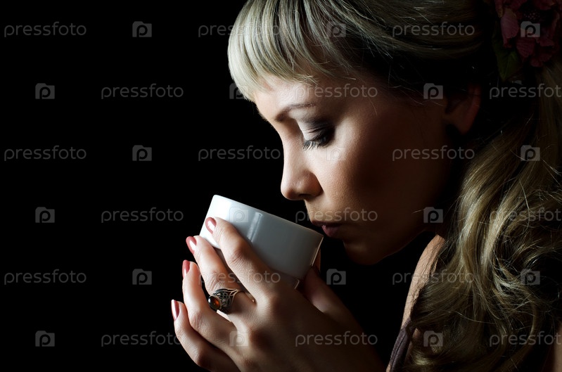 Прекрасная элегантная женщина с чашкой кофе
