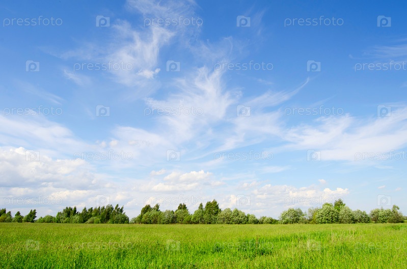 Зеленое поле под голубым небом