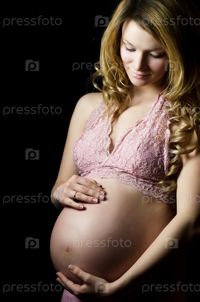 Красивая беременная женщина на черном фоне
