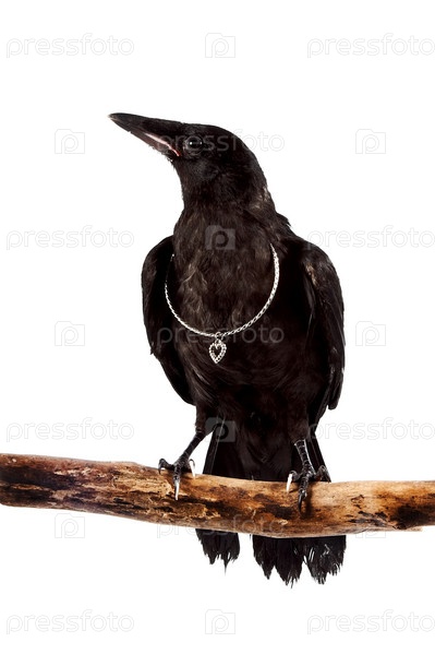 Черная птица с серебряным украшением на ветке