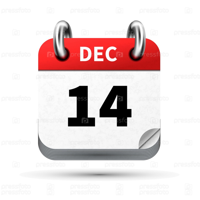 Яркий реалистичный значок календаря 14 декабря