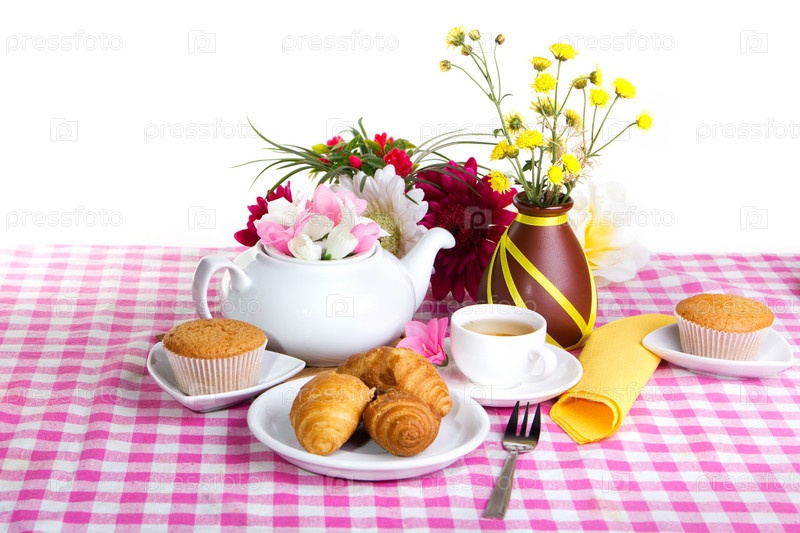 Послеобеденный чай с круассанами, кексом и шоколадным печеньем
