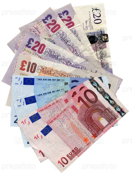 Банкноты евро и фунтов стерлингов