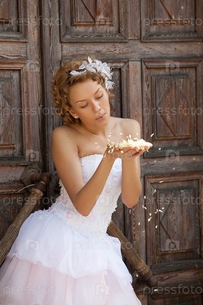 Молодая красивая женщина в подвенечном платье
