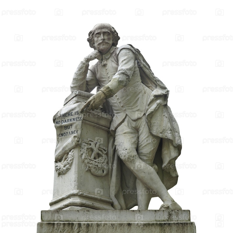 Статуя Уильяма Шекспира (1874 год) на площади Лестер, Лондон, Великобритания, изолировано на белом фоне