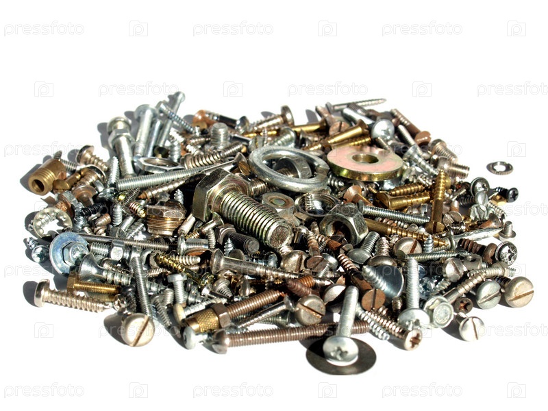 Болты, гайки, винты, изолировано на белом фоне
