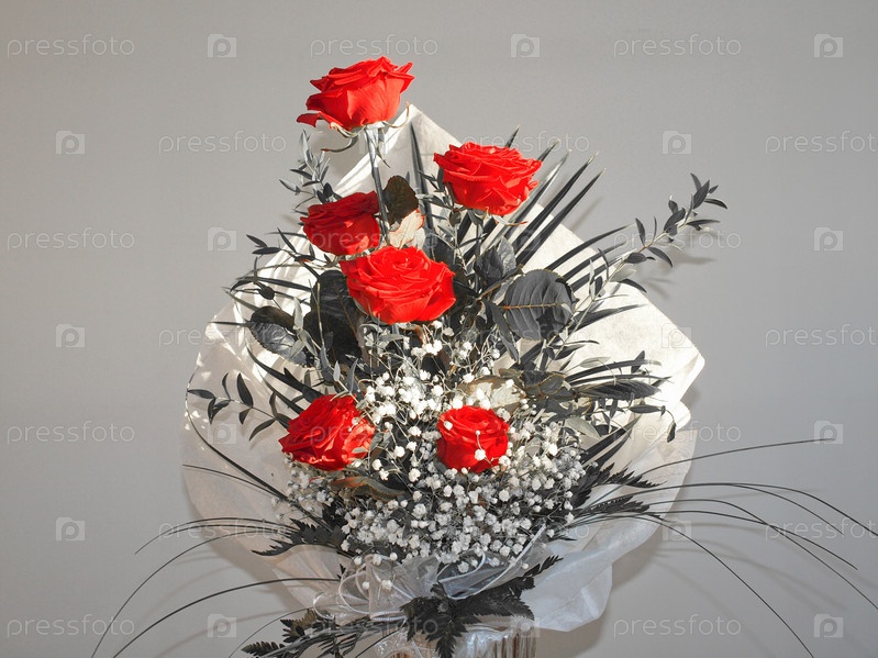 Букет из красных роз на черно-белом фоне