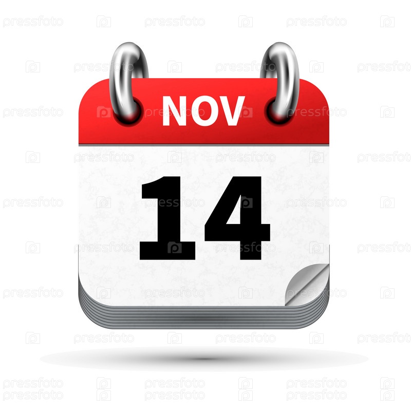 Яркий реалистичный значок календаря с датой 14 ноября