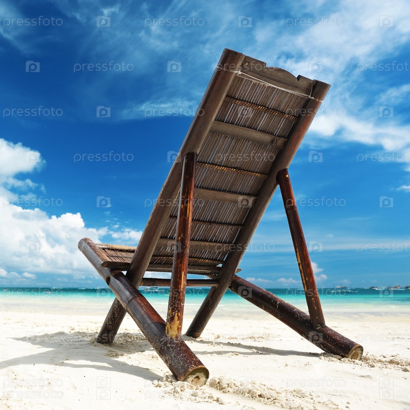 Красивый пляж с шезлонгом