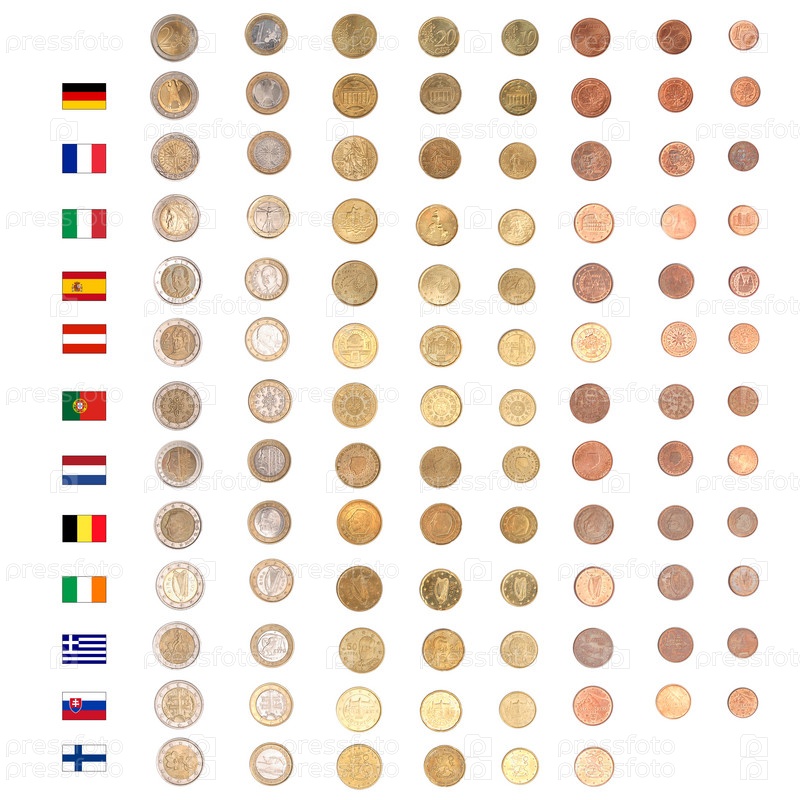 Монеты евро и флаги