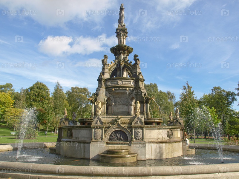 Мемориальный фонтан Стюартов в парке Келвингроув в Уэст-энд, Глазго, Шотландия