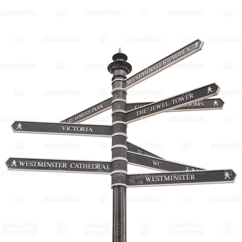 Указатель, изолированный на белом фоне. Лондон, Великобритания