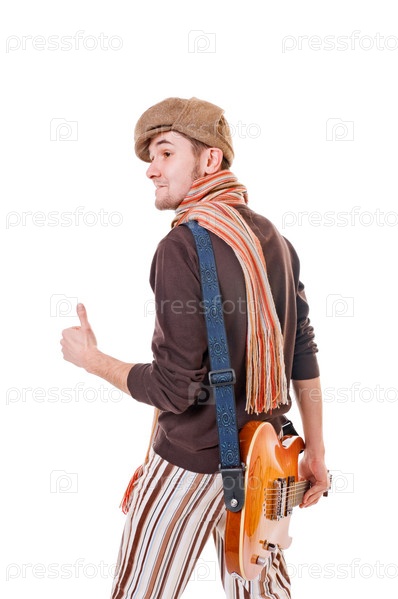 Модный музыкант, изолированный на белом фоне
