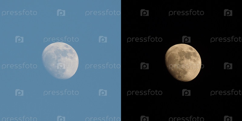 Полная луна на ночном и дневном небе