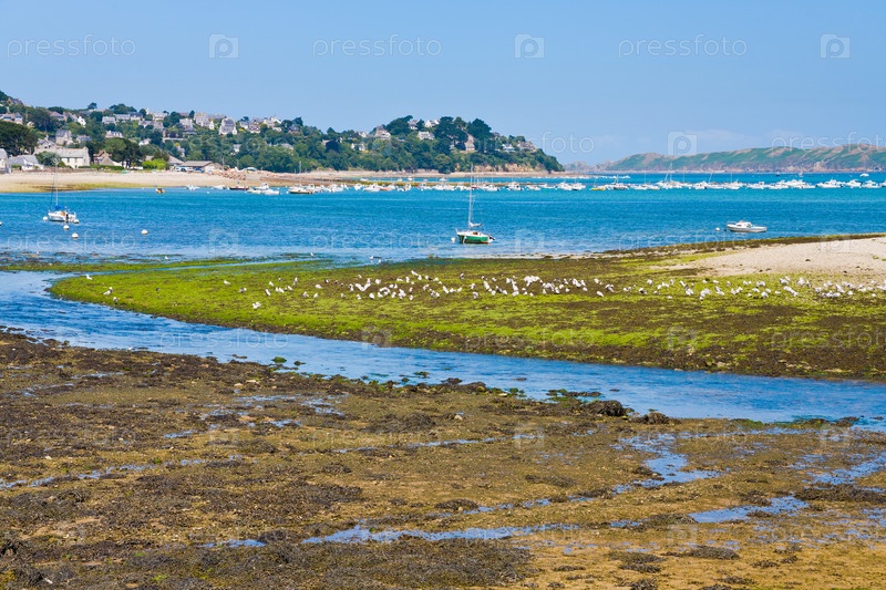 Морское побережье во время отлива вблизи города Перро-Гирк, Бретань, Франция
