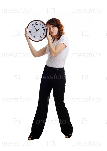 Красивая женщина с большими часами