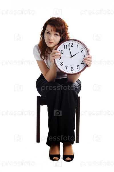 Красивая женщина с большими часами