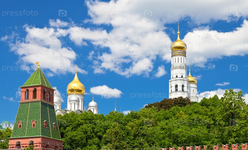 Башни и соборы Московского Кремля в летний день