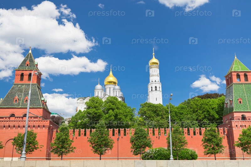 Стена и соборы Московского Кремля в летний день