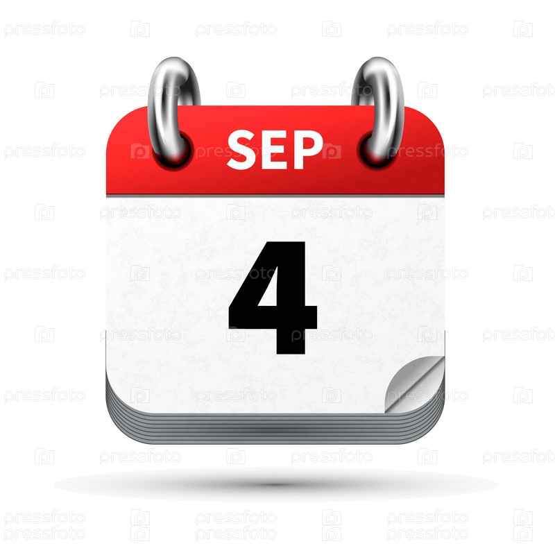 Яркий реалистичный значок календаря с 4 сентября