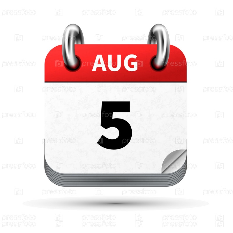Яркий реалистичный значок календаря с 5 августа