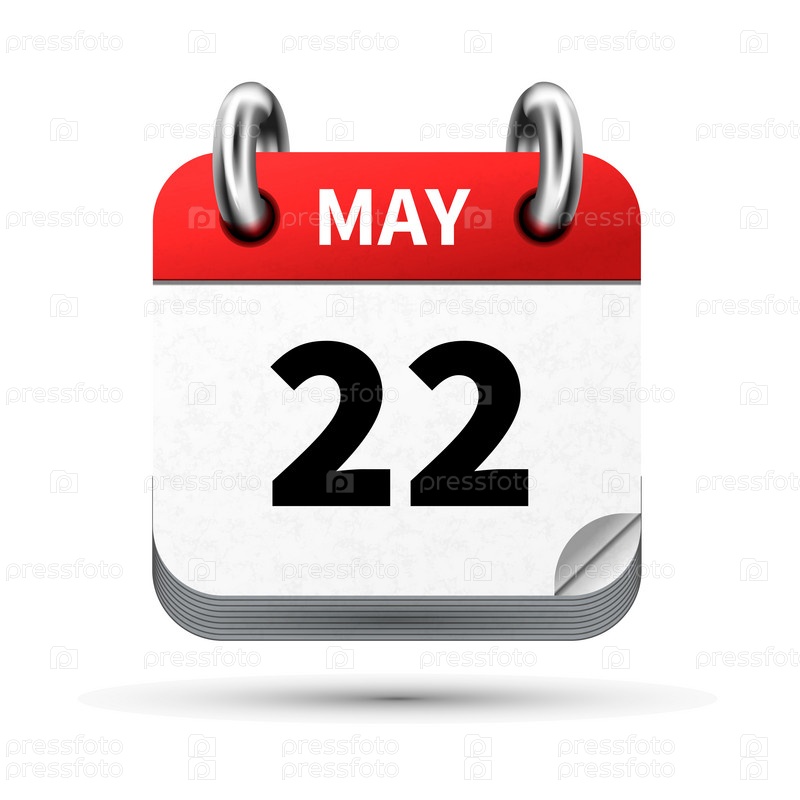 Яркий реалистичный значок календаря с 22 мая