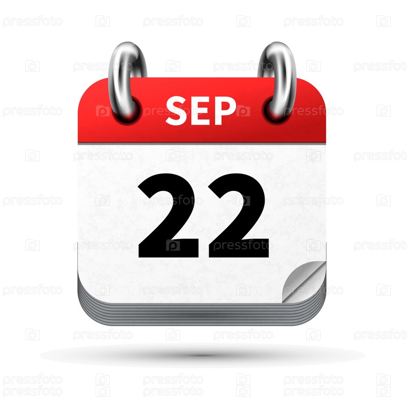 Яркий реалистичный значок календаря с 22 сентября