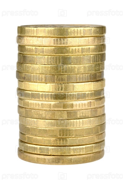 Золотые монеты, изолированные на белом фоне
