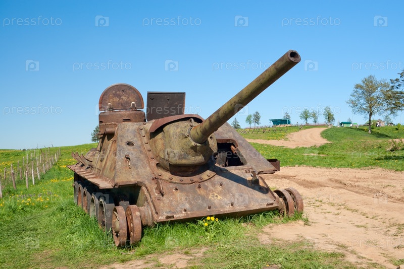 Остов самоходной артиллерийской установки СУ-100 со знаком радиоактивности