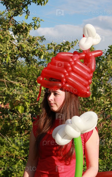 Девушка в шляпе с цветком из воздушных шаров. Твистинг