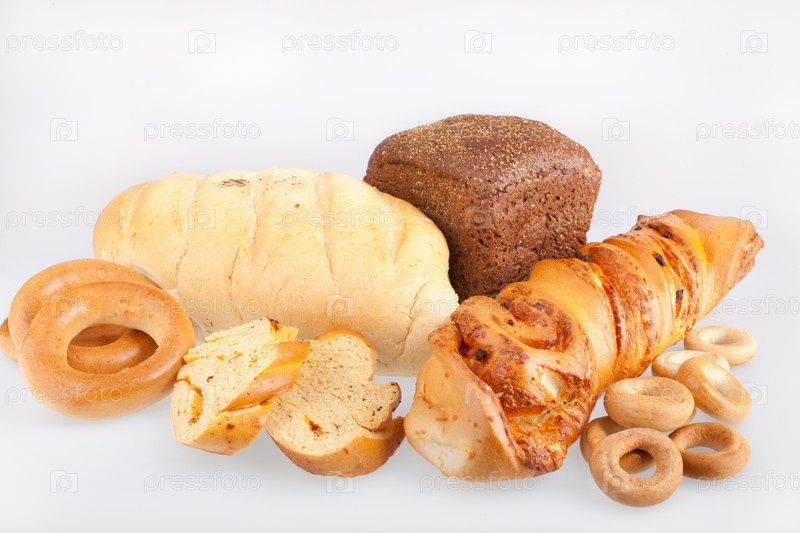 Хлебобулочные изделия на белом фоне