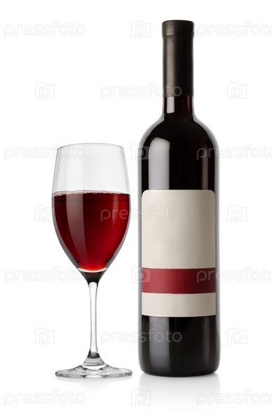 Бутылка красного вина, изолированная на белом фоне